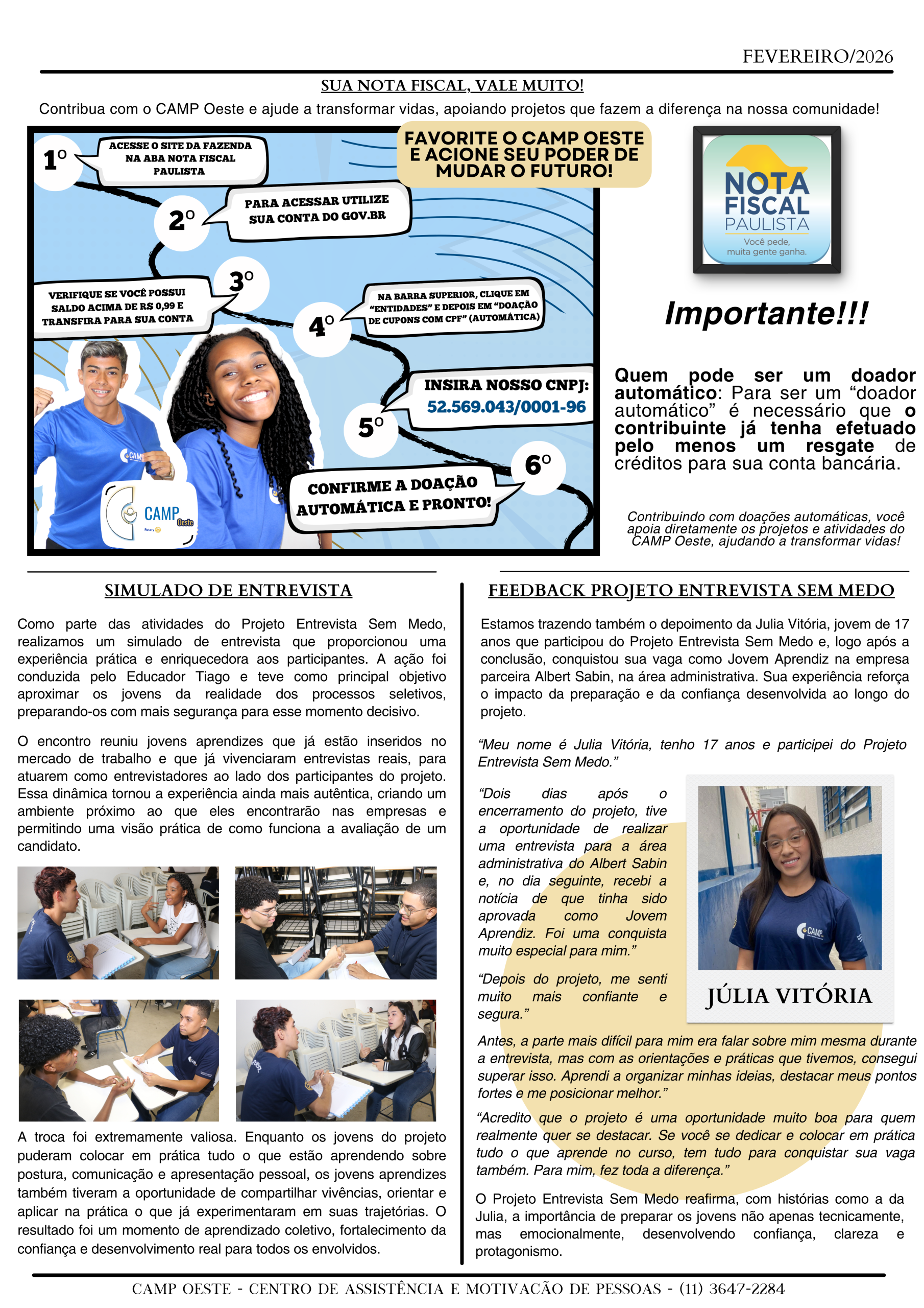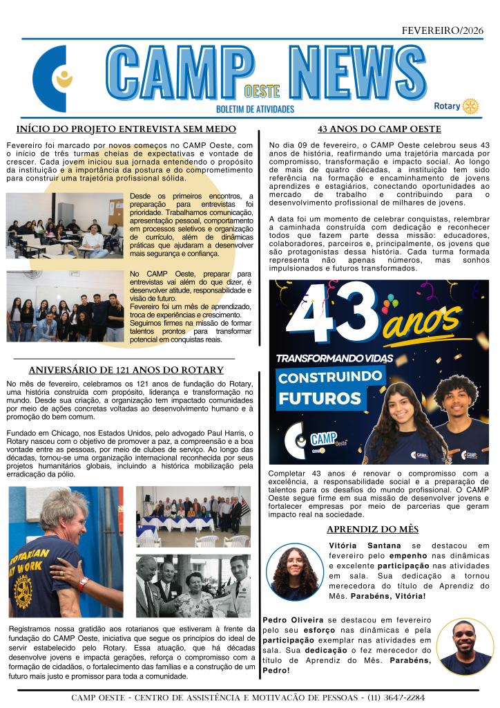 Autor do post:Damaris Lacerda Post publicado:03/03/2026 Categoria do post:Blog Tags: #campoeste, #jovemaprendiz, #socioaprendizagem Leia mais artigos Post anteriorCAMP NEWS – Boletim de Atividades – Janeiro 2026 Você também pode gostar CAMP NEWS – Boletim de Atividades – Fevereiro 2025 11/03/2025 PRINCIPAIS MÓDULOS APLICADOS NA APRENDIZAGEM 22/02/2022 CAMP NEWS – Boletim de Atividades – Novembro 2025 01/12/2025