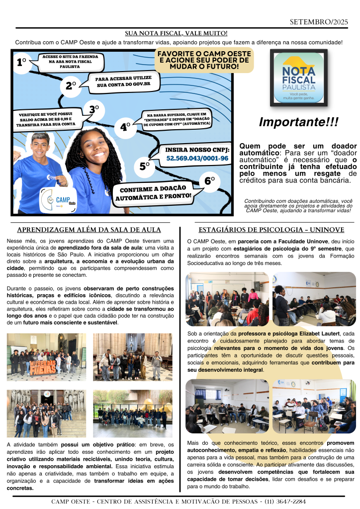 Autor do post:Damaris Lacerda Post publicado:30/09/2025 Categoria do post:Blog Tags: #aprendiz, #aprendizagem, #campoeste, #socioaprendizagem Leia mais artigos Post anteriorTEMA DE 5º E 6º ENCONTRO NO MÊS DE JULHO Você também pode gostar INSCRIÇÕES ABERTAS – 2º TURMA DE 2022 – FORMAÇÃO SOCIOEDUCATIVA 31/03/2022 CAMP NEWS – Boletim de Atividades – Novembro 2024 23/01/2025 CAMP News – Boletim de Atividades – Fevereiro 2024 12/07/2024